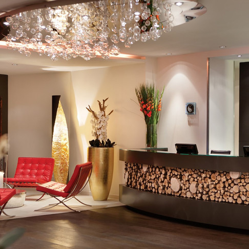 Das Interieur des gesamten Berghotels strahlt im modern-alpinen Tiroler Charme, beruhigt in erdigen Naturtönen, holt mit Holz und Stein ein Stück Natur ins Innere und verströhmt mit einem gekonnten Licht- und Schattenspiel heimelige Atmosphäre. Und um den "roten Faden" von eingangs optisch aufzufangen, akzentuiert und belebt Zimmer wie auch öffentliche Räume mit Elementen in roter Farbe. Bodentiefe Fenster gewähren