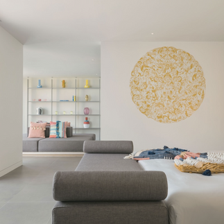 Das W Ibiza verkörpert kunstvoll den Spirit der Insel in Farben, Formen, Mustern und Accessoires bis ins kleinste Detail. Den großzügigen Vorplatz zieren leuchtende Säulen über denen ein weißes Netzdach zu schweben scheint, während die Sonne auf dem Boden ein heiteres Schattenspiel zeichnet. Das überdimensionale Wahrzeichen "W" ist randvoll mit bunten Blumen gefüllt und ziert in Flower-Power-Manier den Haupt- und Strandeingang. Aus den Lautsprechern ertönen zur Begrüßung heiße Beats, die den schicken Hippie-Style musikalisch vervollständigen.